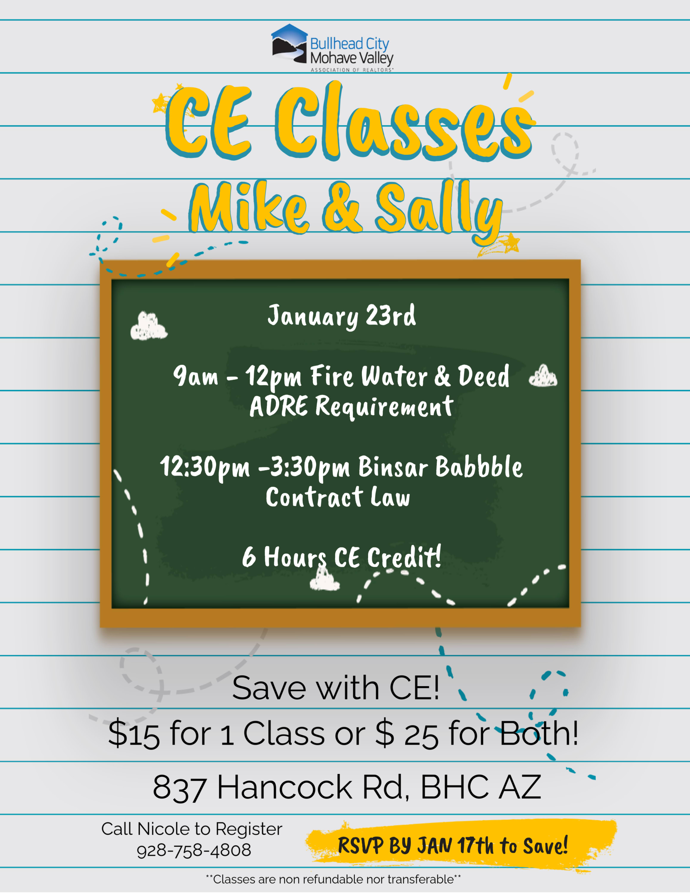 Two CE Classes in One Day! Cost per class: $15.00 Pre-register by Friday before the event and save.