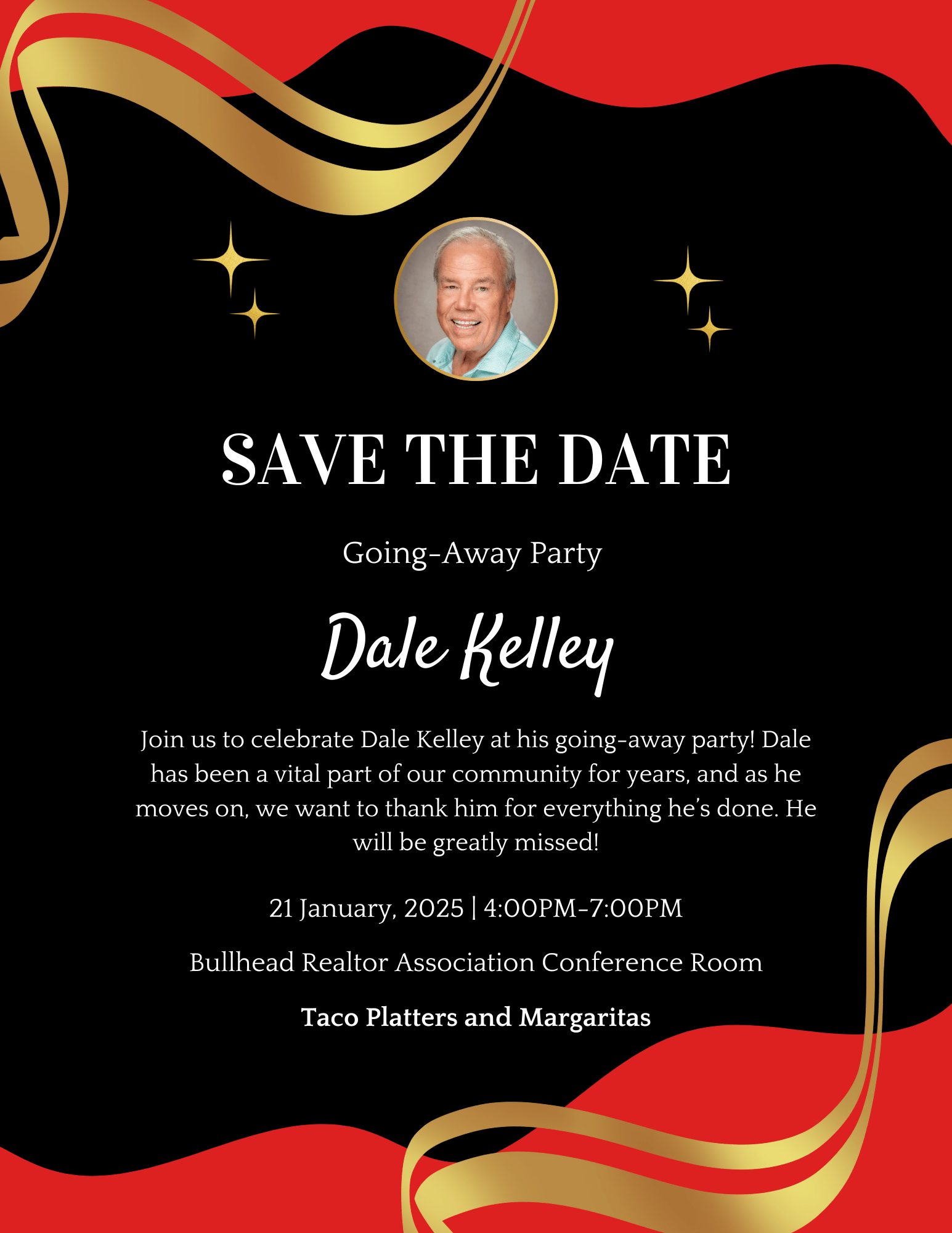Join us to celebrate Dale Kelley at his going-away party! Dale has been a vital part of our community for years, and as he moves on, we want to thank him for everything he has done. He will be greatly missed!