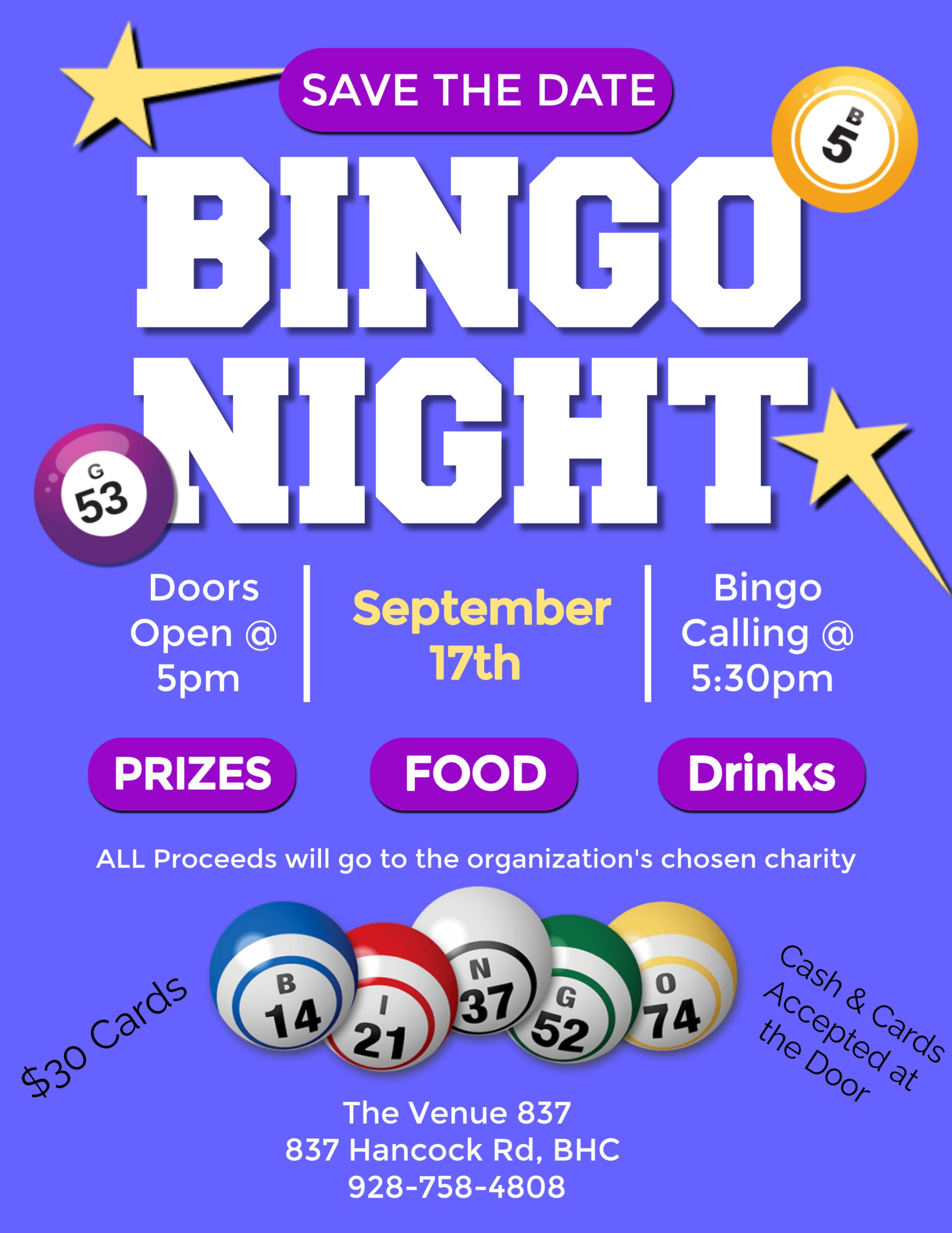 Come Out and Support a Local Charity! Join us for a fun night of Bingo while giving back to our community. 🎉 Bingo Packages: $30 — Includes 6 bingo cards (including blackout) + 1 dauber $10 — Add an extra set of 6 cards, including blackout $2 — Additional daubers available for purchase 🎟️ Tickets: Scan the QR code to purchase in advance, or buy your tickets at the door. We accept debit, credit, and cash. We can’t wait to see you there! If you have any questions, please contact us at 928-758-4808 or Support@bhcmvaor.org