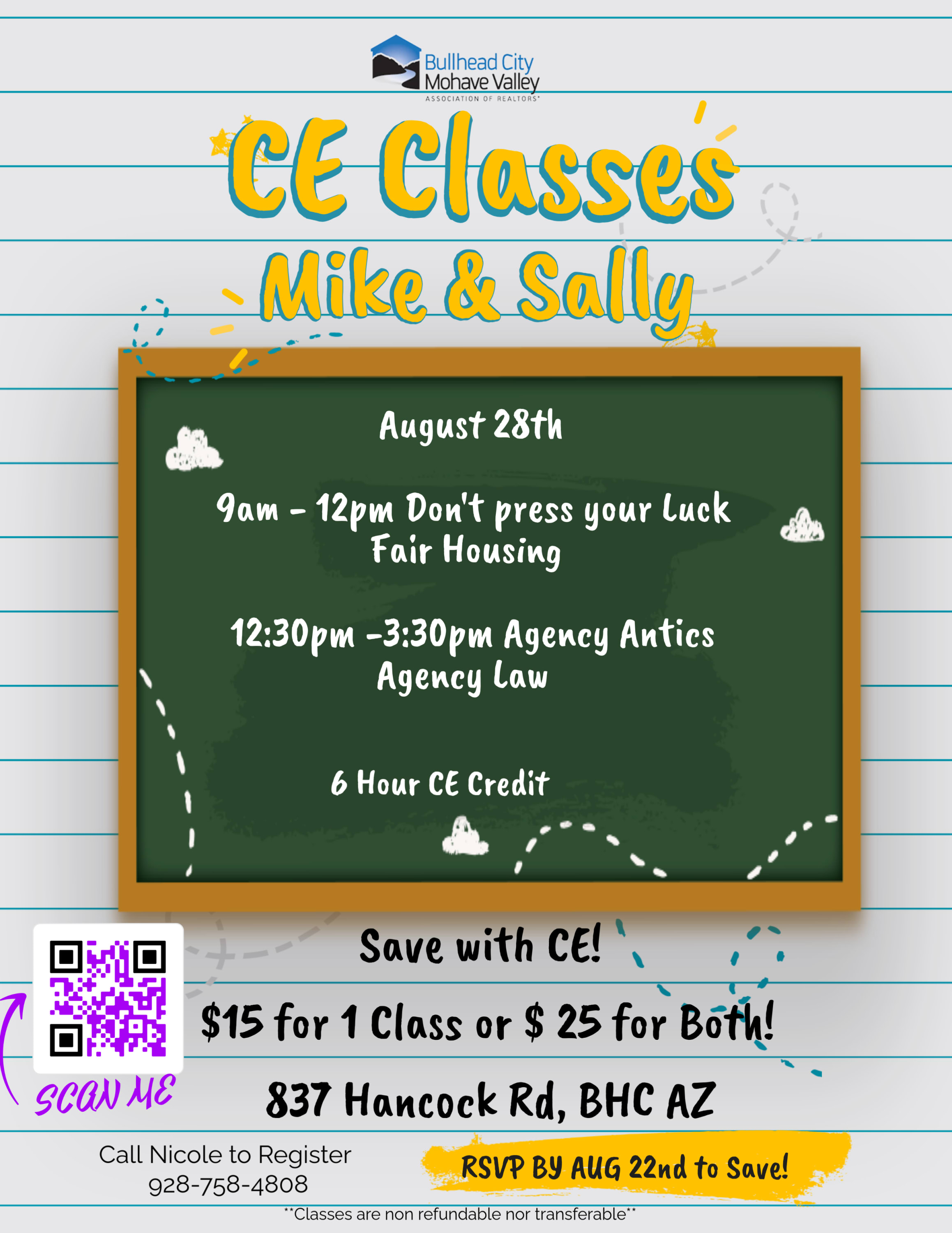 Two CE Classes in One Day! Cost per class: $15.00 Pre-register by Friday before the event and save.